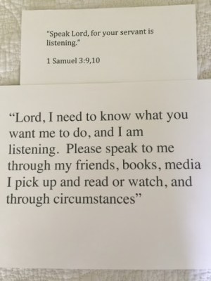 I knew the stakes were high, so I prayed insistently and every moment I could for God to give me an answer. I prayed in the morning and at night and in between when the situation came to mind. I read about how to know if it is God you are hearing or if it isn’t. I posted this verse and this saying up where I could see it when I left the house and when I came into the house.