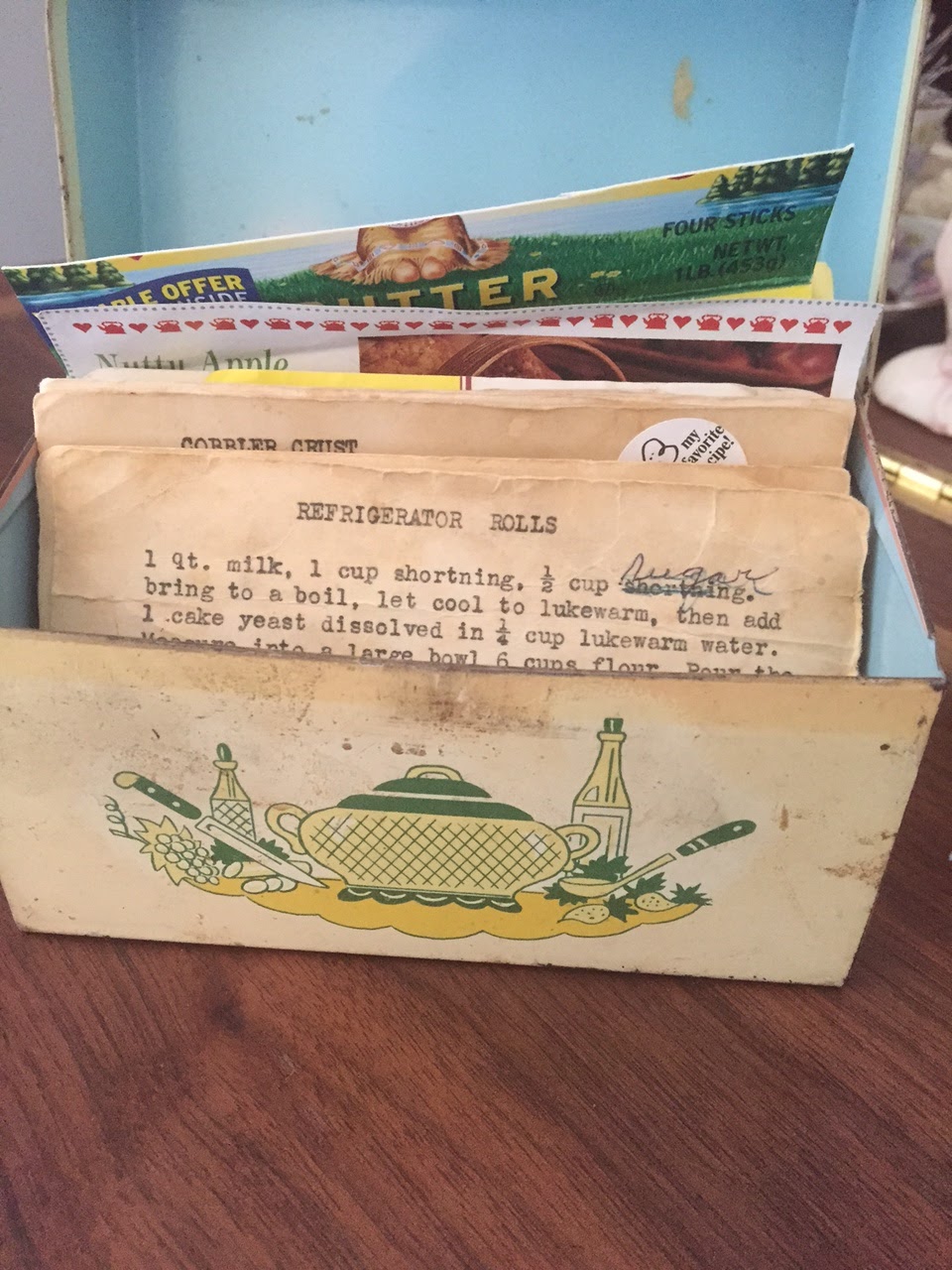 Those good ol’ southern recipes are more than just southern and more than just recipes. They are tradition. They are wisdoms passed on from one generation to the next. I love the digital age; there really is such good in technology or I wouldn’t be blogging! BUT, there is nothing like seeing one of your family member’s handwriting on their personally owned recipe books; especially after it has been passed on. It inspires me to keep going with my journals (if you don’t know me, I have at least one journal in my purse, a couple at my school, and several at home) in hopes that maybe they will be of some value to my children and their children. It is history staring right at you in the face.