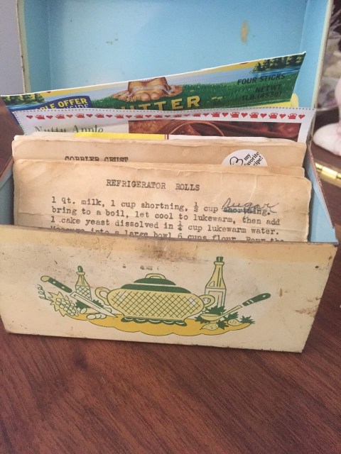 I had it stuck down in my purse for the longest time, and eventually stuck it in my recipe book and I even kept it safe through a couple of moves. She passed away before I had a chance to try it out.
