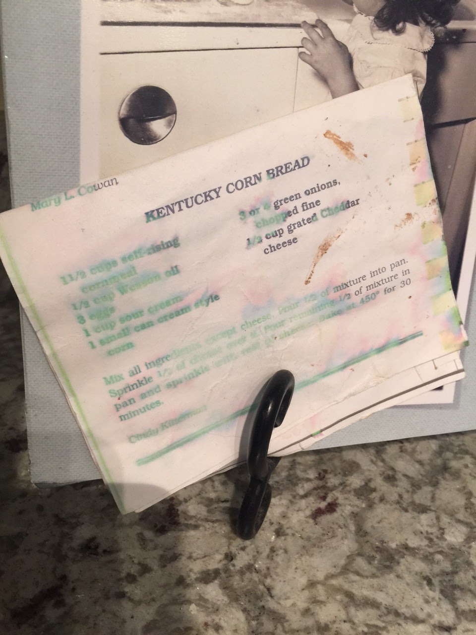 I remember when Grandmother gave me that Kentucky cornbread recipe. It was soon after my wedding and I was asking about her cooking and the skillets she used and she LOVED my interest. She told me some tips and recognized that I would love to be able to actually use real utensils and cook, because Lord knows, I had a LOT to learn (and still do, but I’m getting there). I’ll never forget it, she literally TORE out this recipe and handed it straight to me and told me to keep it.