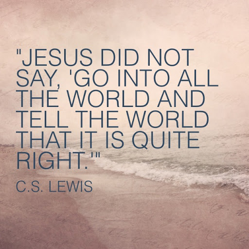 Is it really that bad ‘out there’?? Well, I guess it depends on what you hear and what media source you’re plugged into. I will say, it often feels like it’s getting far worse than it is getting better. Though, sometimes I shock myself with my “I can’t believe this is happening!!” attitude after whatever news story hits my feed. After all, C.S. Lewis who I admire and respect, said, “Jesus Christ did NOT say, Go into all the world and tell the world that it is quite right.”
