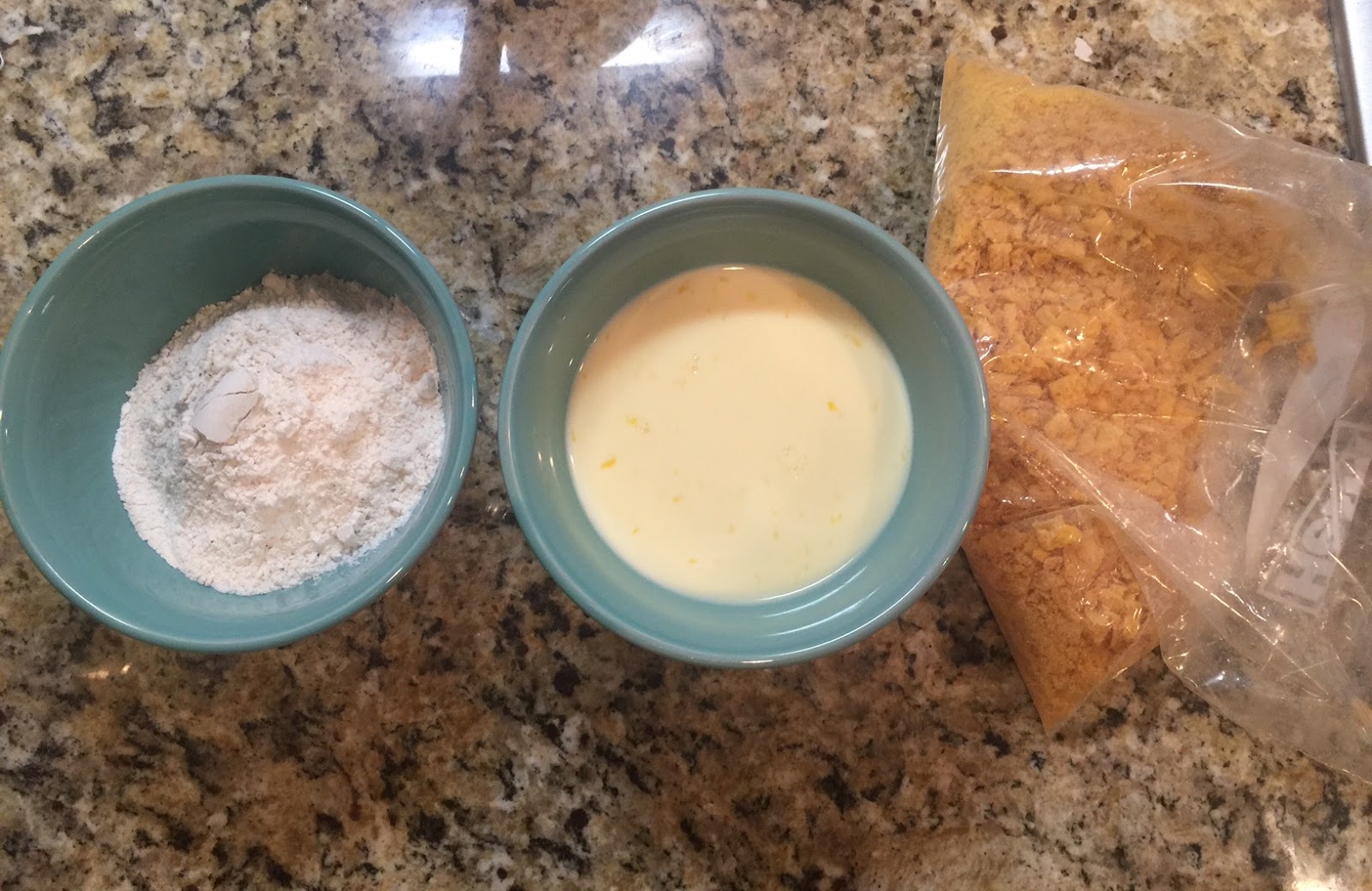 **I put about 3 chicken fingers in the bag each time I shook, I wanted to make sure the tenders get good and covered with the cereal. Putting too much chicken in the bag won’t cover them as well.**
