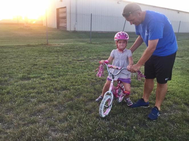 On one of her last tries before grasping the oh-so-treasured bike riding talent, my husband yelled in typical coach voice: “Come on, girl! Pedal fast and don’t look back!”